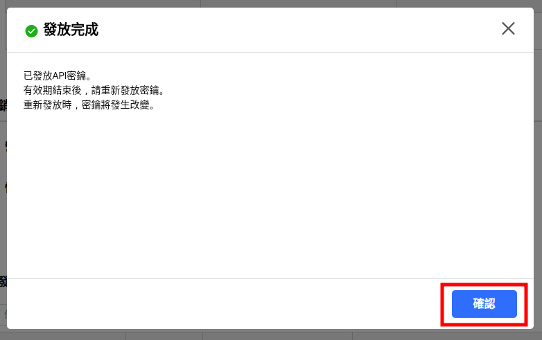 發放完成以後會在下方看見您的 OPEN API 相關資訊,畫面如下: